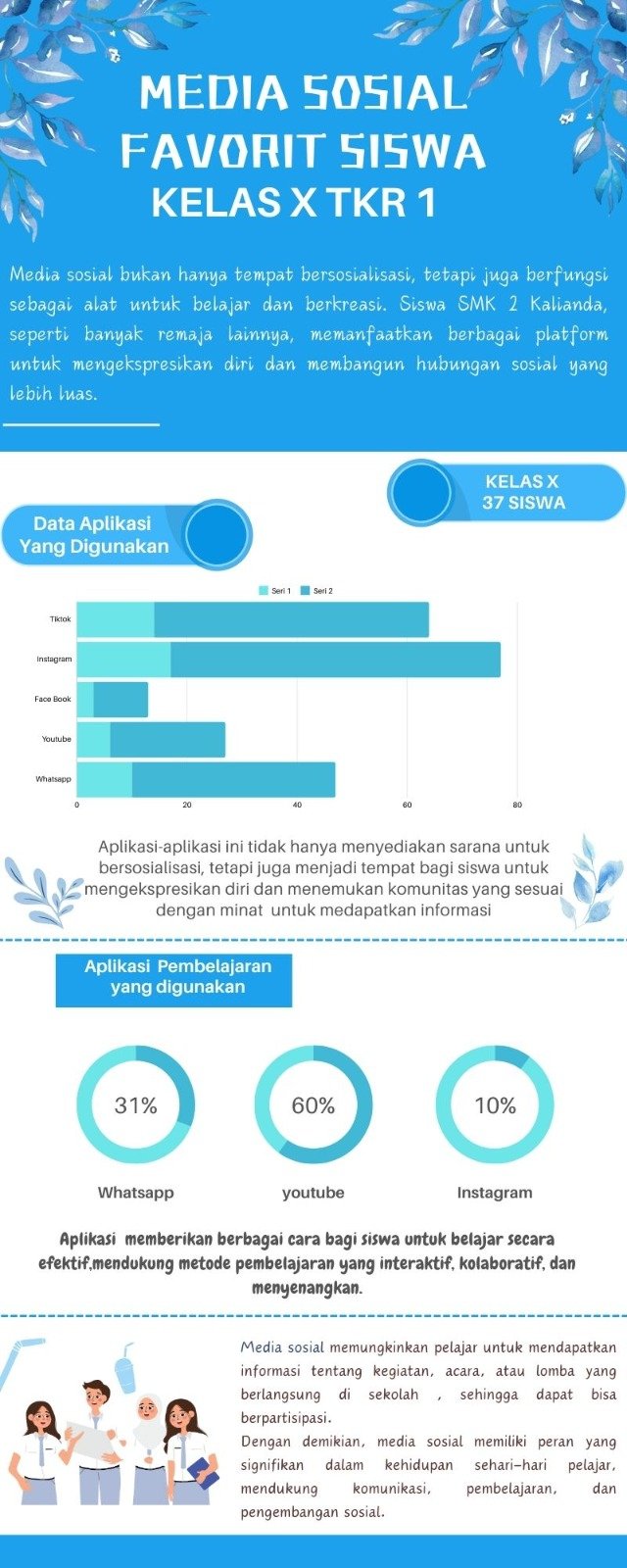 Hasil Survey tentang media sosial favorite Kelas X Teknik Kendaraan Ringan 1 (TKR1) SMK Negeri 2 Kalianda. Dengan survei ini platform media sosial mana yang paling sering dipakai oleh Kelas X TKR 1.